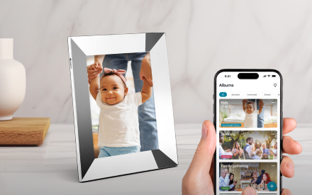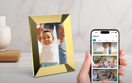 Upload photos, create multiple albums and select which ones to display on your frame